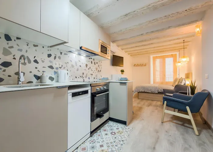 Acogedor y céntrico Estudio 2 Barcelona, un apartamento de 29 m², situado en el centro de Barcelona, se encuentra a 5 minutos a pie del Mercado de la Boquería. Se encuentra a una distancia de 1 km de la estación de tren Passeig de Gràcia - y justo al lado de la estación de autobuses Pl Joan Amades.